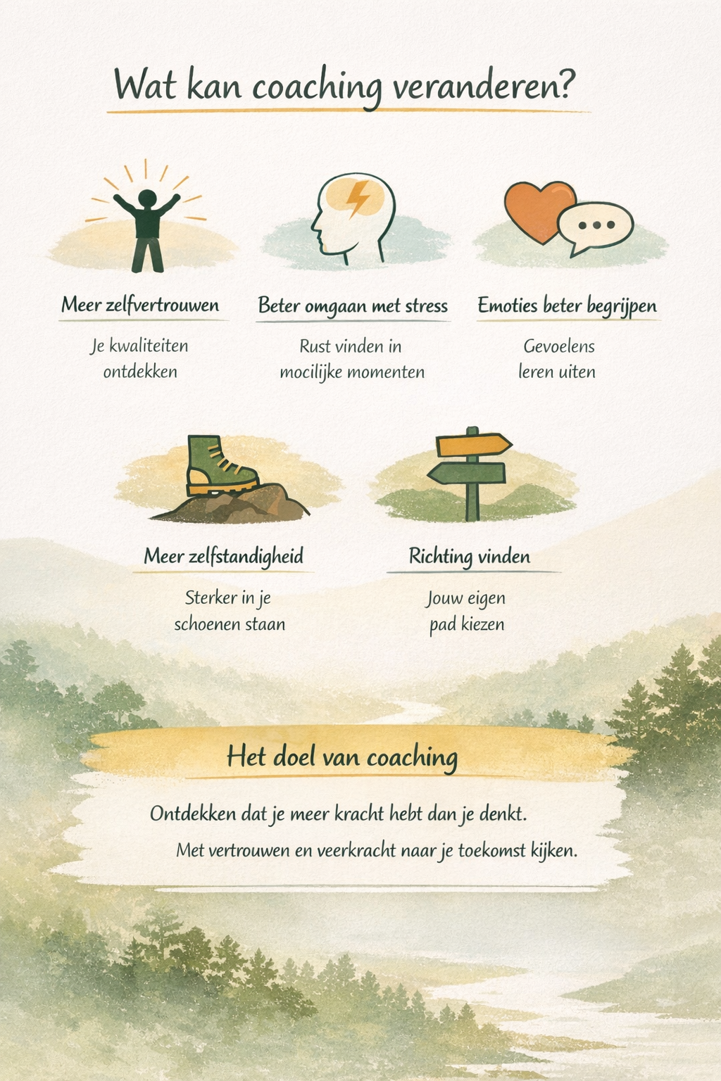 Het doel van coaching is jongeren helpen hun eigen oplossingen te ontdekken en sterker in hun schoenen te staan.